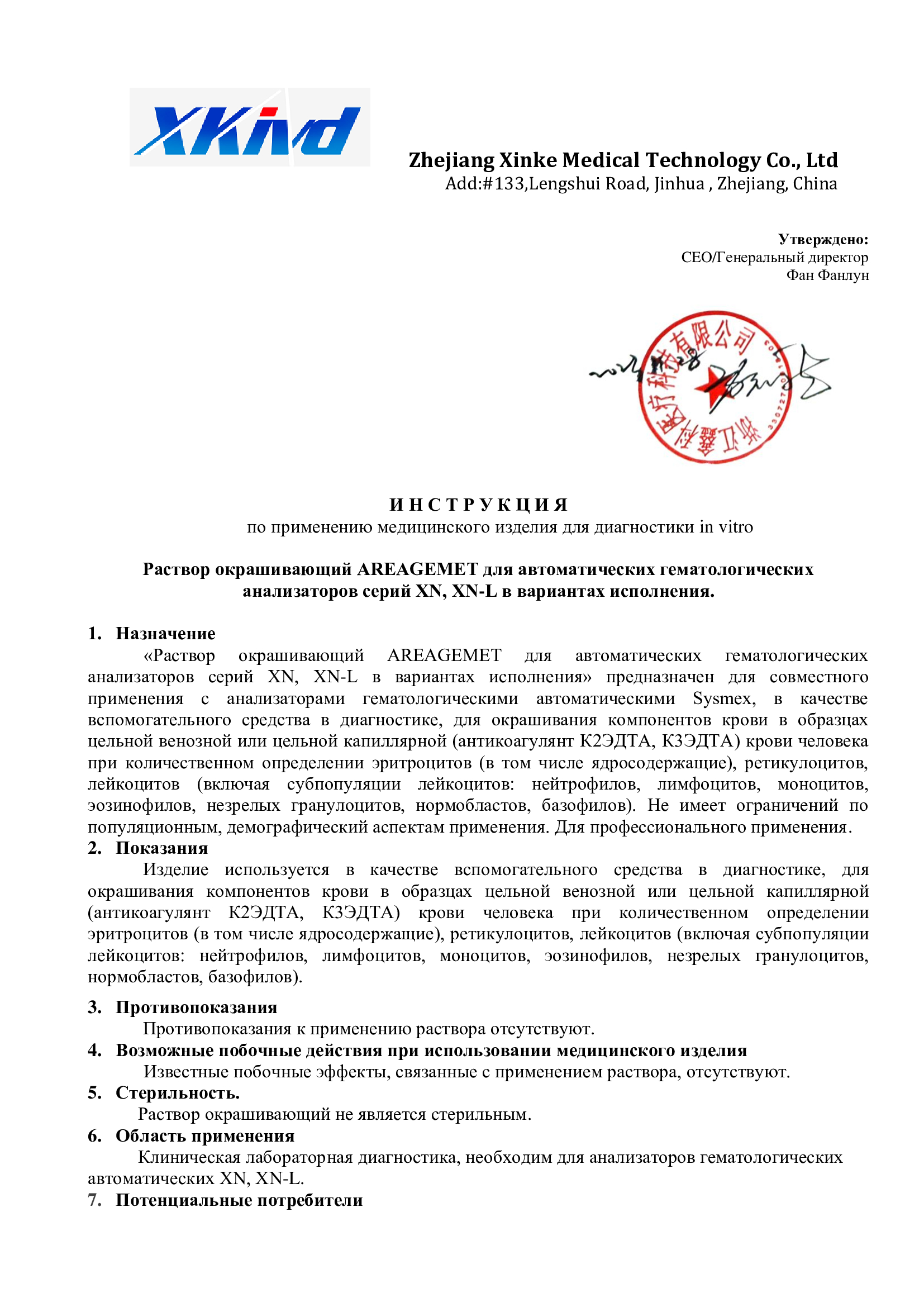 Главная страница > Документы > Документация Sysmex, реагенты марки AREAGEMET > Инструкция, растворы окрашивающие AREAGEMET