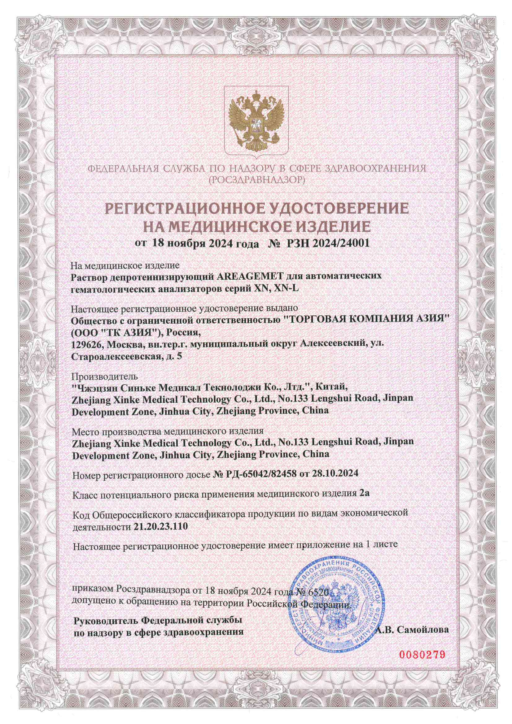 Главная страница > Документы > Документация Sysmex, реагенты марки AREAGEMET > РУ, растворы депротеинизирующие AREAGEMET