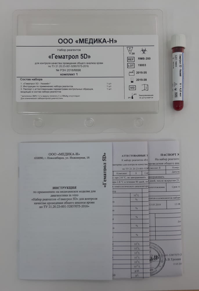 Гематологический контроль Гематрол 5D — Низкий, 4,0 мл | 1 шт. | Инструкция по применению набора реагентов | 1 шт. |